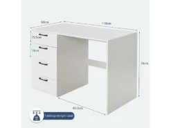 Bureau Droit Avec 4 Tiroirs MDF Finition Mélaminé – L110 X P60 X H76 Cm- Brillance Blanche