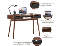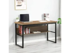 Bureau D’ordinateur, Bureau Pc 120 Cm, Avec 2 Tiroirs Et Compartiment De Rangement Ouvert