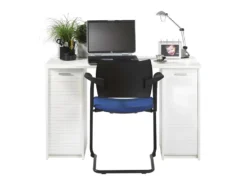 Bureau AMANI – 3 Tiroirs Et 1 Porte – MDF – Blanc Laqué Et Chêne