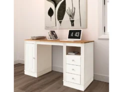 Bureau Avec 3 Tiroirs – MDF Et Métal – Coloris : Naturel Et Noir – AKIVI
