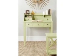 Bureau COLETTE Rangement Avec 5 Tiroirs Et Poignées Coquille, En Pin Massif Lasuré Couleur Miel