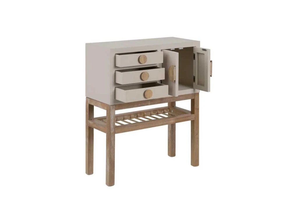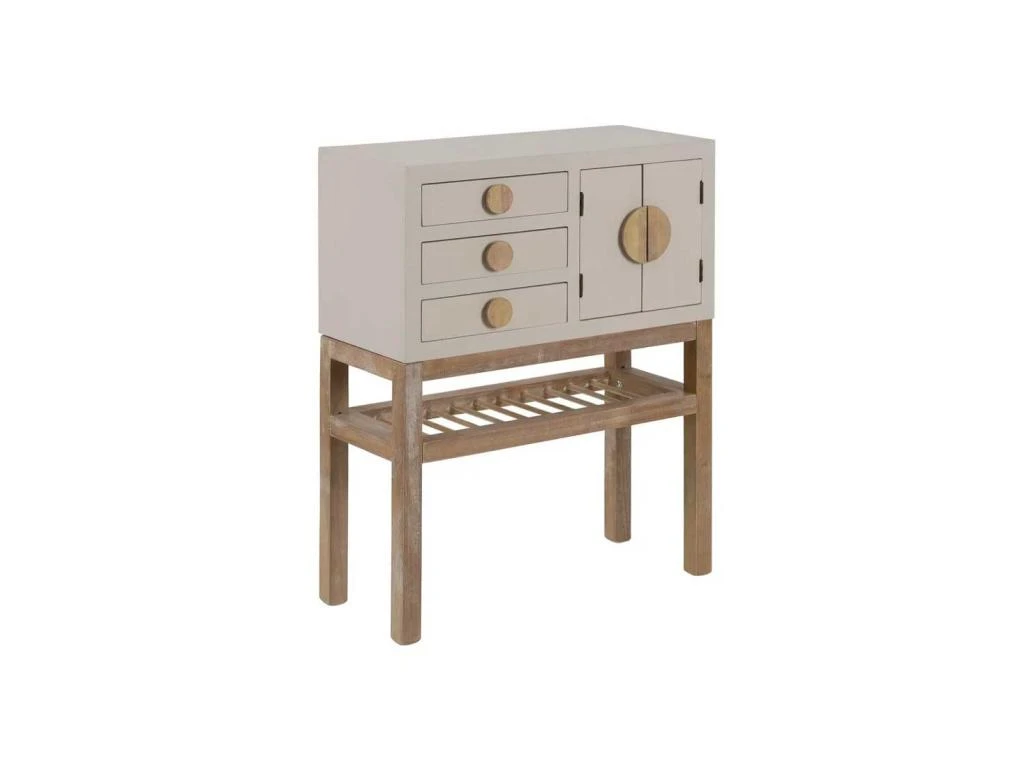 Reposant sur une structure en bois de Paulownia légèrement cérusé blanc le corps de ce meuble de complément est revêtu d’une laque Taupe qui apportera luminosité et chaleur dans votre entrée ou votre salon.