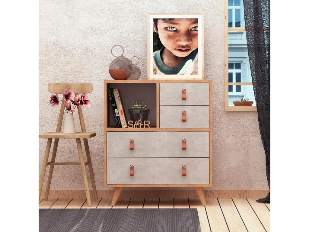 Buffet – Chene Et Vert – Style Ethnique – 1 Porte – GARDENIA – L 110 X P 45 X H 80 Cm