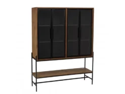 Alana Vitrine Avec 3 Portes Et 2 Tiroirs, En Bois D’acacia Teinté Brun, Livrée Prête à L’emploi.