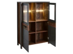 Buffet Haut Design Type Scandinave Collection AOMORI 4 Portes, Coloris Blanc Et Gris Mat