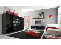 Buffet Haut TONGA Quatre Portes Et Deux Tiroirs. Couleur Wengé. LED Incluses. Style Design.