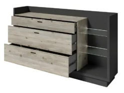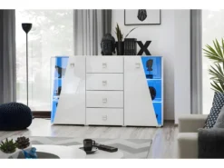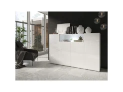 Buffet Partiellement Vitré Avec éclairage LED 160×92. Collection LUCIA. Coloris Blanc Brillant