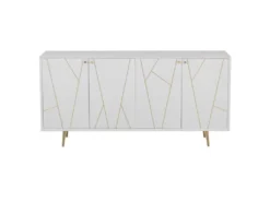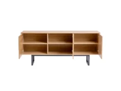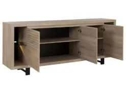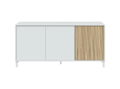 Buffet 3 Portes Battantes Blanc/Bois Clair – YANA – L 154 X L 40 X H 74 Cm