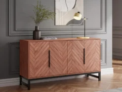 Buffet 4 Portes – Bois D’acacia Et Métal – Naturel Et Noir – VEDILA