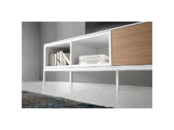 Buffet Bois Chêne Et Laqué Portes Avec Push Pieds époxy Acier Inoxydable