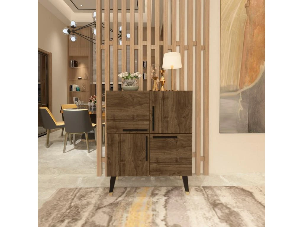 Buffet Haut Collection DARWIN. Couleur épicéa Et Noir. 3 Portes Et 3 Tiroirs.
