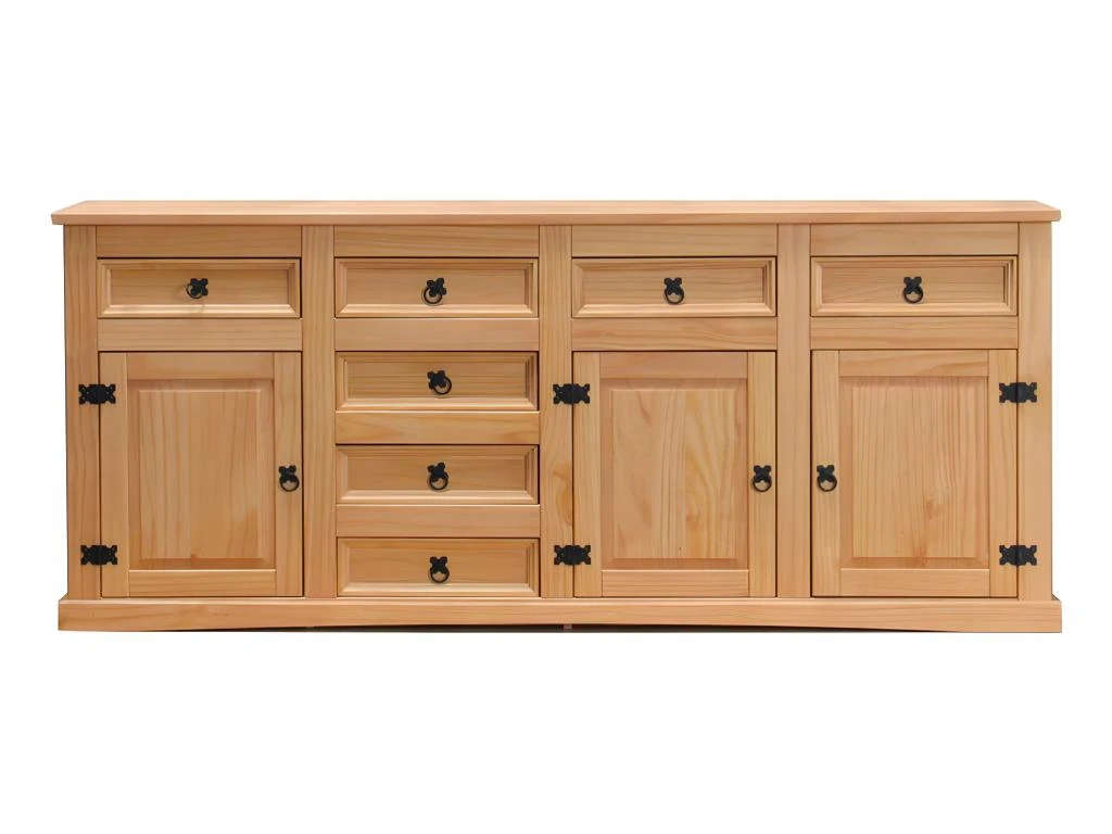 Buffet Haut Collection DARWIN. Couleur épicéa Et Noir. 3 Portes Et 3 Tiroirs.