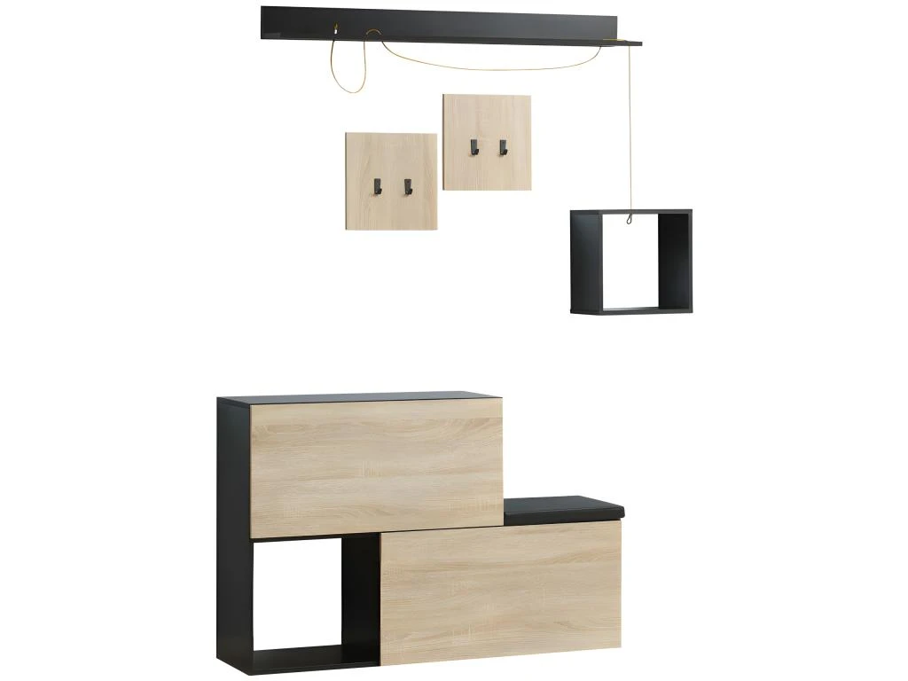 – Charge max. recommandée : 100 Kg (banc), 5 Kg (porte-manteau), 10 Kg (cube suspendu/étagère murale)