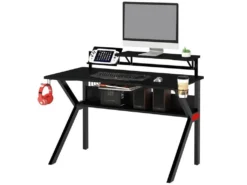 Bureau Gaming La Meilleraie En Bois Mdf Style Fibre De Carbone Noir / Rouge