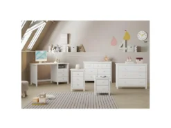 Plus Bureau Avec 1 Porte, 1 Tiroir Et 2 Tablettes De Rangement, Finition Béton/blanc Brillant.