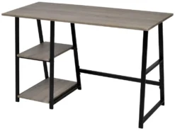 Bureau Table Meuble Travail Informatiqueavec 2 Ă©tagĂšres Gris Et ChĂȘne 0502078