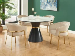 Lot De 2 Chaises Avec Accoudoirs En Velours Et MĂ©tal DorĂ© – Beige – ZAOVA De Pascal MORABITO