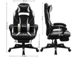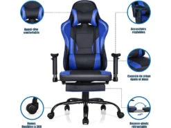 Fauteuil Gamer, Chaise Gaming Inclinable Avec Repose-pieds Télescopique Avec Appui-tête