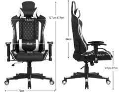 Chaise Gaming De Bascule, Siège Gamer Pivotante Ergonomique, Support Lombaire Et Poche Blanc