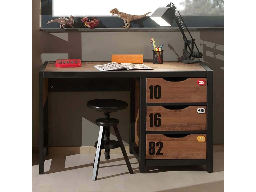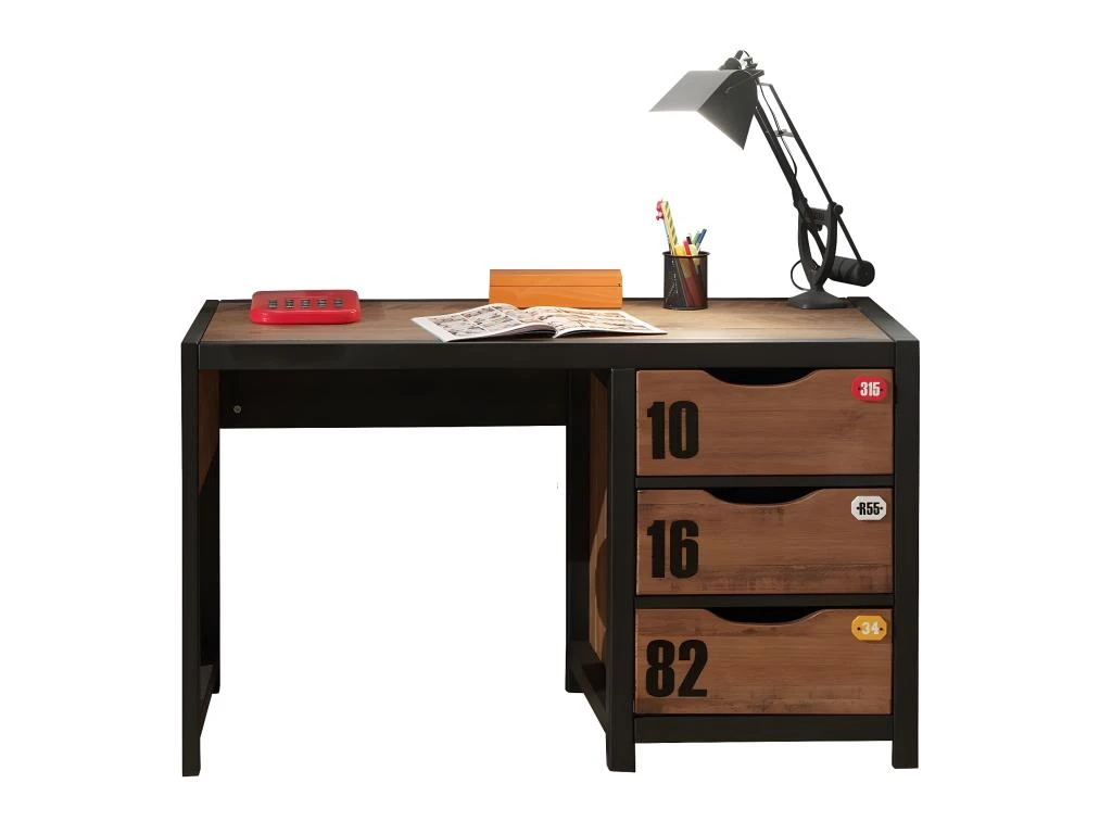 Bureau 3 Tiroirs en Pin Massif avec Motifs de la gamme Tchad.